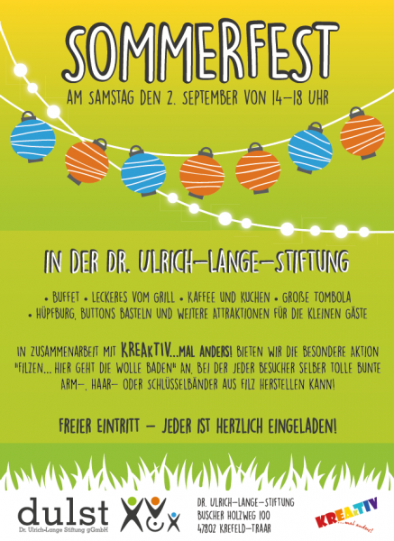 Wir laden herzlich zu unserem diesjährigen Sommerfest am 2. September von 14-18 Uhr ein.